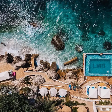 Det 4-stjernet Hotel Liro - Adults Only Radhimë ligger 450 meter fra Plazhi Nimfa og tilbyder sine gæster 18 værelser med liggestole og parasoller som er til rådighed på stranden. Du kommer til at befinde dig 7 km fra Muradie Mosque og 2 km fra Bora Bora.